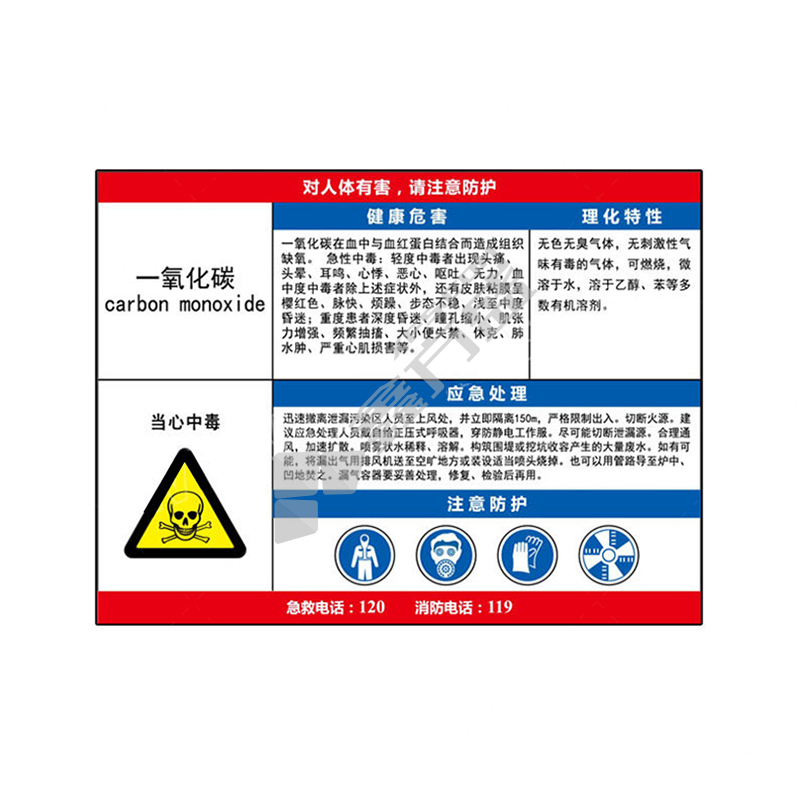 标识牌专家 职业病危害告知卡17 QSA024B1 400×320mm 一氧化碳