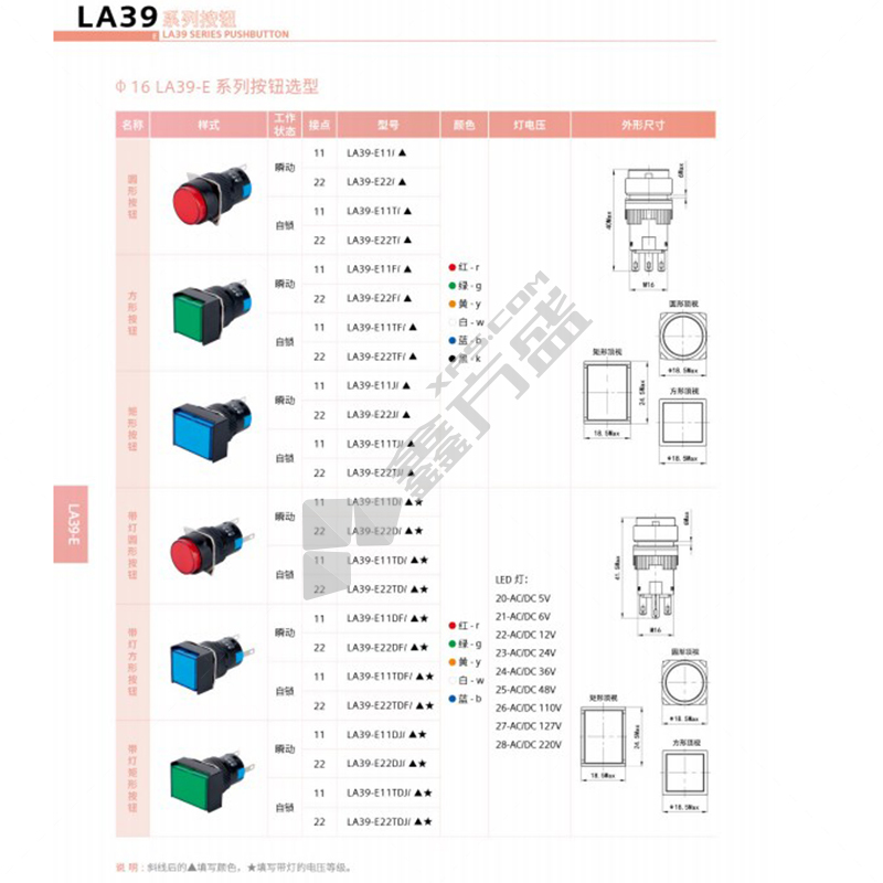 APT LA39-G 系列按钮 LA39-G11DJ 矩形带灯按钮 Φ16