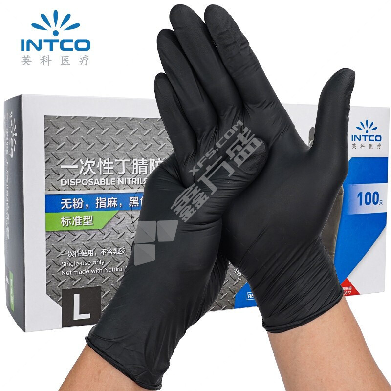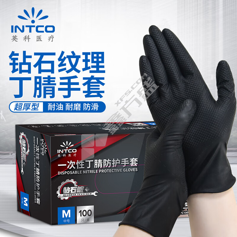 英科 钻石纹一次性丁腈防护手套 L码 黑色 NDPC1004