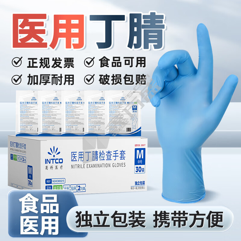 英科 5.0g加厚型一次性丁腈防护手套 M码 蓝色 K88-1001