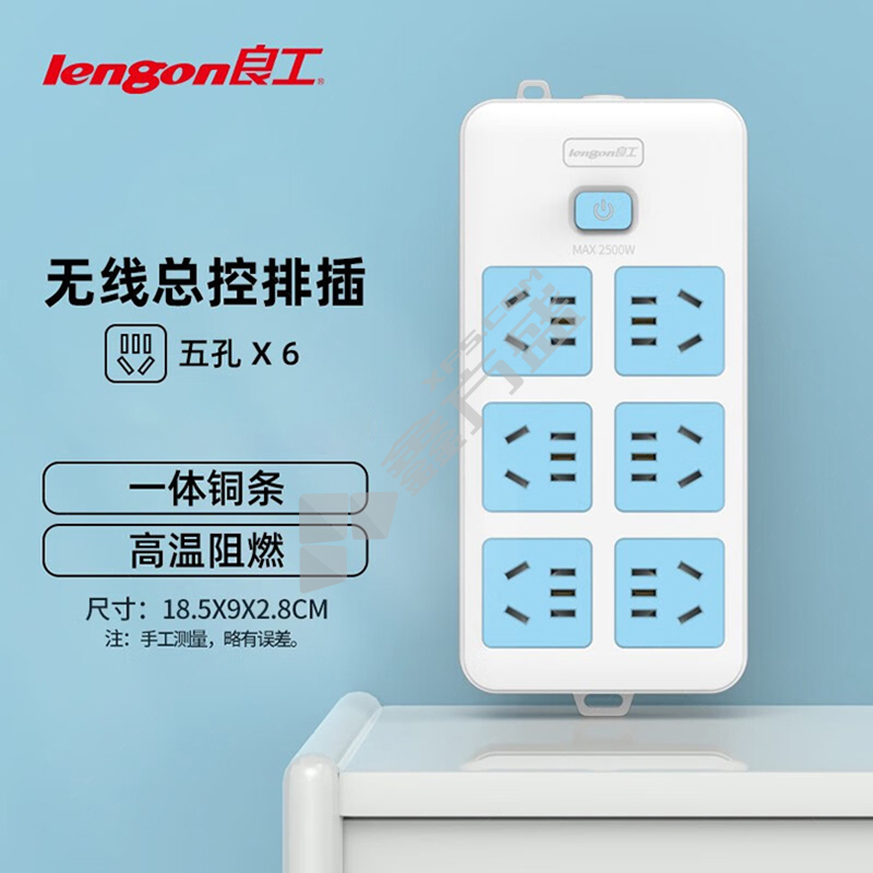 良工 6位五孔 总控开关 插排 XD-T106 10A 2.8m 白蓝色