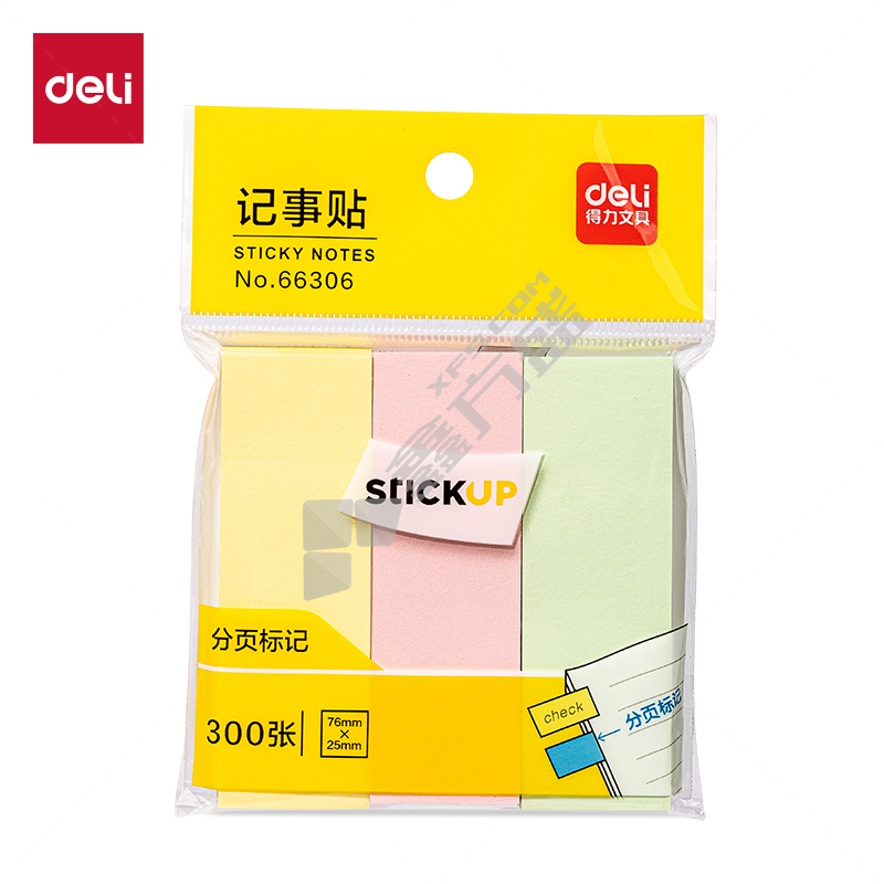 得力 66306 百事贴 76*25mm 100张 黄色 粉色 绿色