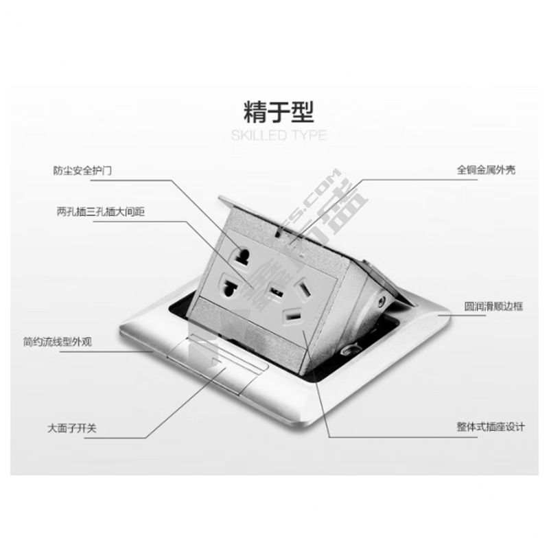 施耐德 220系列 五孔 铝质光面 无底盒 弹出式地插 E220AC10U_ABE_C1